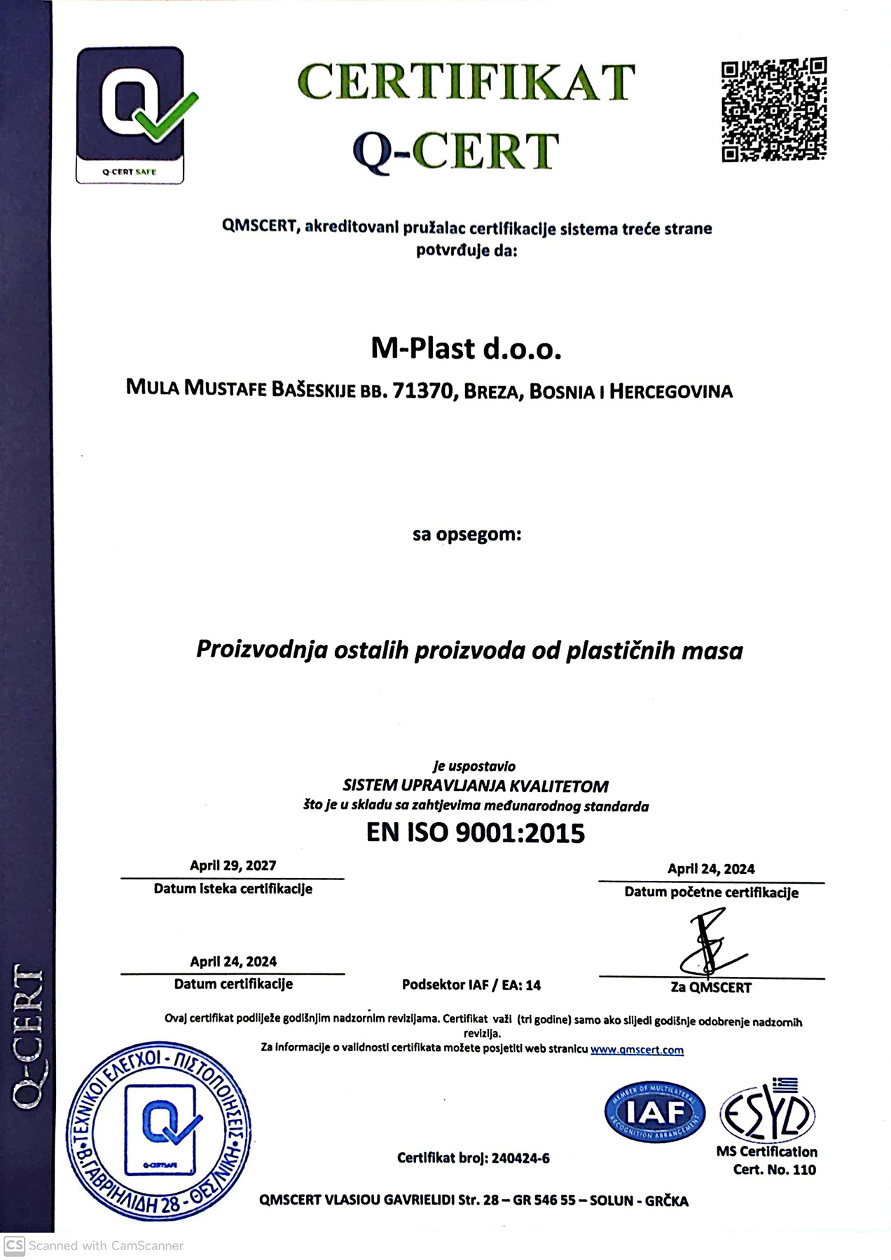 Kompanija M-Plast d.o.o. Breza kroz svoje dugogodišnje uspješno poslovanje ostvarila je značajne referense i certifikate u polju brizganja plastike za različite proizvode.
